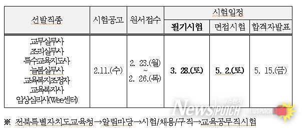 노경숙 노사협력과장은 “11일 안내되는 공고에는 직종별 채용인원, 자격요건 및 세부 일정 등 구체적 내용이 포함된다”며 “교육공무직원 시험을 준비하는 응시자는 전북교육청 누리집에서 반드시 확인해주길 바란다”고 말했다.