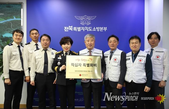 뉴스펀치 최영남 기자 | 전북특별자치도소방본부는 4일 도청에서 대한적십자사 전북지사에 2026년도 대한적십자사 특별회비 300만원을 전달했다.