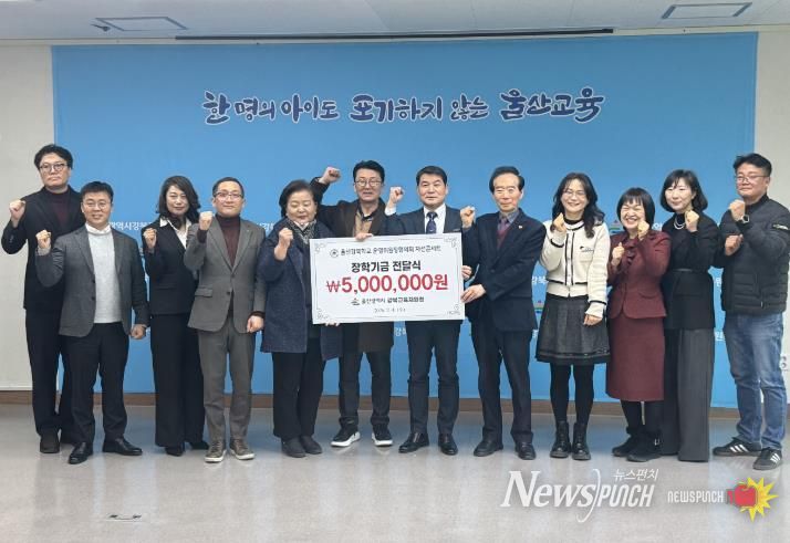 뉴스펀치 김윤걸 기자 | 울산 강북교육지원청은 4일 강북학교운영위원장협의회에서 지역 내 취약계층 학생들을 위한 장학금 500만 원을 전달받았다.