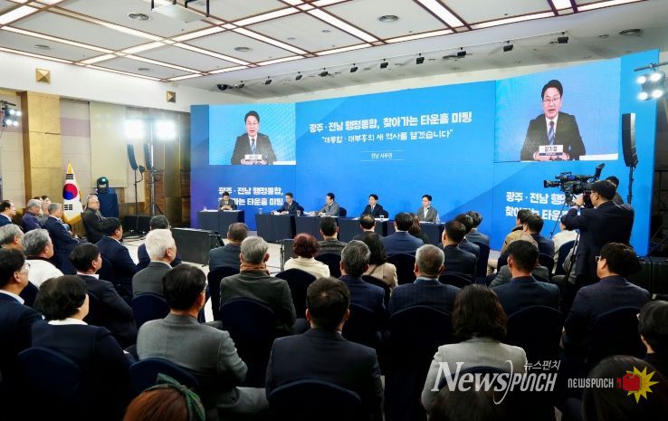 뉴스펀치 김용희 기자 | 광주시와 전남도가 광주전남 행정통합에 대한 궁금증과 우려를 해소하기 위해 권역별로 시·도민과 직접 소통하는 ‘찾아가는 타운홀미팅’을 마련, 통합 방향과 과제에 대해 공개 토론을 진행했다.
