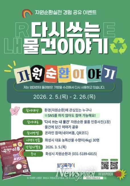 뉴스펀치 박상훈 기자 | 화성특례시는 시민들이 일상에서 실천하고 있는 자원순환 경험을 공유하는 참여형 캠페인 '다시쓰는 내 물건 이야기' 를 운영한다.