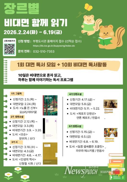 뉴스펀치 정홍균 기자 | 인천광역시교육청부평도서관은 2월 24일부터 6월 19일까지 ‘장르별 비대면 함께 읽기 프로그램’을 운영한다.