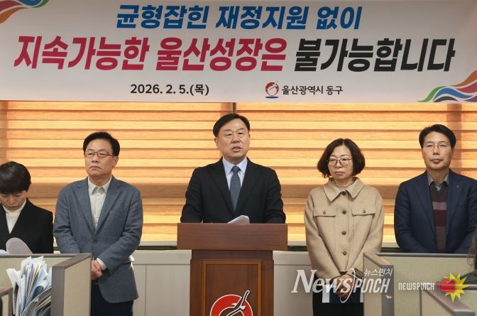 뉴스펀치 김윤걸 기자 | 김종훈 울산 동구청장은 2월 5일 오전 10시 40분 동구청 프레스센터에서 기자회견을 갖고 "균형잡힌 재정지원없이 지속 가능한 울산 성장은 불가능 하다"라며 울산시가 관련 조례를 개정해 자치구가 안정적으로 재원을 확보하는데 앞장 서 줄 것을 촉구했다.
