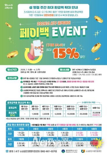 뉴스펀치 김용희 기자 | 광주광역시 서구가 설 명절 소비가 집중되는 시기를 맞아 ‘온누리상품권 페이백(환급) 행사’를 대폭 확대 운영한다.