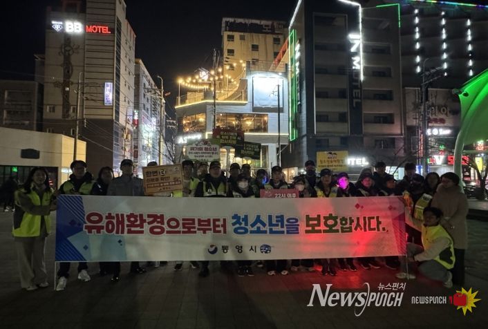 뉴스펀치 박세훈 기자 | 통영시는 지난 4일 야간 시간대 광도면 죽림리 일원 청소년 유해업소 및 숙박업소 밀집지역에서 겨울방학을 맞은 청소년들의 일탈을 예방하고, 안전한 성장환경을 조성하고자 청소년 유해환경 개선활동을 실시했다.