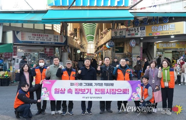뉴스펀치 김윤걸 기자 | 부산 남구에서는 설 명절을 앞두고 2월 4일부터 2월 6일까지 3일간 관내 10개 전통시장 및 골목형상점가에서 온누리상품권 전통시장 장보기 캠페인을 실시했다.