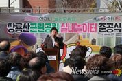 뉴스펀치 박상훈 기자 | 박강수 마포구청장은 3월 13일 오후 1시 30분, 쌍룡산근린공원(염리동 532-5)에서 열린 ‘쌍룡산근린공원 실내놀이터 조성사업 준공식’에 참석해 어린이와 가족을 위한 새로운 놀이공간의 조성을 축하했다. 쌍룡산근린공원 실내놀이터는 미세먼지와 폭염, 한파 등 날씨의 영향을 크게 받지 않고 아이들이 사계절 내내 이용할 수 있도록 조성된 공간이다. 실내에는 통슬라이드와 낚시놀이, 미디어존 등 다양한 놀이시설을 갖췄고, 보호자를 위한 휴식 공간도 함께 마련해 가족 단위 이용객의 편의를 높였다. 여기에 옥상 잔디광장, 휴식 공간이 더해지면서 실내 놀이와 야외 활동을 함께 즐길 수 있도록 했으며, 주변에는 수목관찰 오솔길과 매화나무·산수유나무 등 다양한 수목과 초화류를 갖춰 어린이들이 자연을 가까이에서 함께할 수 있도록 했다. 박강수 마포구청장은 실내놀이터 내부와 옥상 공간 등을 둘러본 뒤 주민들과 함께 기념식수를 하며 현장을 살폈다. 박 구청장은 “최근 우천과 폭염, 폭설 등 날씨와 관계없이 아이들이 안전하게 이용할 수 있는 실내공간의 필요성이 점점 커지고 있다”라며,
