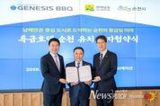 뉴스펀치 최영남 기자 | 순천시는 13일 전라남도, 제너시스BBQ와 함께 정원워케이션센터에서 ‘특급호텔 건립 등을 위한 투자협약(MOU)’을 체결했다고 밝혔다. 이번 협약으로 순천시는 글로벌 K-푸드 프랜차이즈 기업 제너시스BBQ 그룹(회장 윤홍근)과 손잡고 순천 경제 지도를 바꿀 대규모 투자 유치에 나서게 됐다. 제너시스BBQ는 오는 2031년까지 순천만국가정원 인근 등 최적의 부지에 500~1,000실 규모의 특급 호텔 등을 건립할 계획이다. 국제회의가 가능한 컨벤션센터와 워터파크 등 복합 관광 인프라가 함께 조성되며, 이를 통해 1,200~2,500명의 신규 일자리 창출이 예상된다. 순천시가 구상하는 ‘RE100 반도체 국가산업단지’와 연계해 글로벌 기업과 투자자를 수용할 비즈니스 인프라 구축에도 힘이 실릴 전망이다. 국제 수준의 숙박·비즈니스 환경이 마련되면 체류형 관광 기반 순천의 투자 경쟁력도 높아질 것으로 보인다. 또한 순천시는 특급 호텔 등 관광 인프라와 대형 쇼핑몰 코스트코를 양대 축으로 구축해 전남 동부권을 넘어 남해안권 경제 거점 도시로 도약한다는 계획이다. 순천에서