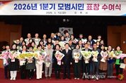뉴스펀치 박세훈 기자 | 진주시는 13일 시청 시민홀에서 지역사회 발전에 기여하고 자발적인 봉사와 나눔을 실천한 시민 90명을 대상으로 ‘2026년 1분기 모범시민 표창 수여식’을 개최했다. 이날 수여식에서는 지역사회 발전을 위해 헌신하고 이웃사랑 실천에 앞장서 온 시민들에게 시정 발전·선행 분야의 모범시민 표창이 수여됐다. 표창을 받은 시민들은 각자의 자리에서 이웃과 지역을 위해 봉사하며 따뜻한 공동체를 만들어 온 공로를 인정받았다. 특히 ▲홀몸 어르신들의 생활환경을 살피고 조손가정 학생 지원에 앞장서 온 ‘박진옥’ 진주백합로타리클럽 회장 ▲암 투병 중인 독거노인을 가족처럼 돌보는 따뜻한 나눔을 실천해 온 ‘박형오’ 씨 ▲진주의 이야기를 담은 도서를 발간해 지역의 가치를 알리고 문화예술 발전에 기여한 ‘이문희’ 도서출판 곰단지 대표 ▲금호지 주변 환경을 내 집 앞마당처럼 가꾸며 깨끗한 지역 환경 조성에 힘써 온 ‘강길봉’ 씨 등이 표창을 받았다. 이 밖에도 지역 곳곳에서 묵묵히 봉사와 나눔을 실천하고 있는 이·통장과 봉사단체 회원 등 많은 시민의 공로가 함께 빛났다. 진주시 관계자는