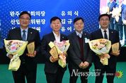 뉴스펀치 최영남 기자 | 완주군의회 유의식 의장과 김규성, 유이수 의원이 13일 지역 농업 발전과 농업인 권익 증진에 기여한 공로를 인정받아 한국후계농업경영인 완주군연합회로부터 감사패를 수상했다. 유 의장을 비롯한 세 의원은 지역 농업인의 권익 향상과 농업 경쟁력 강화를 위한 의정활동을 통해 후계농업인들의 안정적인 영농 환경 조성과 농업 발전에 기여한 공로를 인정받았다. 감사패를 수상한 유의식 의장은 “농촌의 고령화와 기후 변화 등 어려운 여건 속에서도 묵묵히 땅을 지키는 후계농업인 여러분께 오히려 감사의 마음을 전한다”며, “이번 감사패는 농업 발전을 위해 더 열심히 뛰라는 채찍질로 알고, 앞으로도 농가 소득 증대와 지속 가능한 농업 환경 조성을 위해 의회 차원의 지원을 아끼지 않겠다”고 소감을 전했다. 김규성 의원은 “농업 현장에서 땀 흘리는 경영인 여러분의 노고를 누구보다 잘 알고 있기에 이번 감사패가 더욱 뜻깊고 어깨가 무겁다”며, “농자천하지대본(農者天下之大本)의 정신을 잊지 않고, 농업인이 대우받고 농촌이 살맛 나는 완주군을 만들기 위해 실질적인 민생 조례 제정과 예산 확보에 최선을 다하겠다”고 밝혔