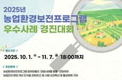 뉴스펀치 김길룡 기자 | 농림축산식품부는 한국농어촌공사와 함께 10일 청주 오스코(OSCO)에서 '2025년 농업환경보전프로그램 우수사례 경진대회' 최종 발표심사와 시상식을 개최했다. 농업환경보전프로그램은 지역 단위의 농업환경보전 활동을 통해 농업의 공익적 기능을 강화하고, 농업인의 환경보전 인식을 높이기 위해 2019년 5개 마을을 시작으로 도입된 사업이다. 현재는 전국 39개 마을에서 프로그램이 추진되고 있다. 농식품부는 참여 마을의 다양한 개선·모범 사례와 우수 성과를 발굴·공유하고 이를 통해 사업 효과를 높이기 위해 이번 경진대회를 마련했다. 지난 2개월간 전국 39개 참여 마을로부터 참가신청서를 접수한 뒤, △농업환경 분야(토양·생태·용수·경관·문화유산 등)별 주요 개선 성과 △사업 추진 전·후 변화 △독창적 성과 등을 중심으로 전문가 서면심사를 진행해 6개 마을을 최종 발표심사 대상으로 선정했다. 12월 10일 열린 최종 발표심사에서는 △대상 충남 보령 ‘소양마을’ △최우수상 제주 서귀포 ‘대평리마을’ △우수상 4개 마을(경북 의성 ‘장2리마을’, 강원 양구 ‘양구지구’, 충북 진천 ‘당