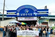 뉴스펀치 김길룡 기자 | 광주문화재단은 추석을 앞두고 지역 전통시장에서 장보기 행사를 개최했다. 행사는 10월 1일 대인시장을 시작으로 10월 2일 남광주시장, 양동시장, 봉선시장 등 관내 4개 전통시장에서 진행됐다. 재단 임직원들은 온누리상품권을 활용해 명절 준비에 필요한 식재료와 생활용품을 구입하며 전통시장 소비 촉진에 힘을 보탰다. 이번 행사는 물가 상승과 경기 침체로 위축된 소비 환경 속에서 전통시장 이용을 장려하고, 소상공인의 매출 증대에 기여한다는 점에서 의미가 크다. 노희용 광주문화재단 대표이사는 “전통시장은 단순한 구매 공간이 아니라 지역민의 생활이 이어지는 중요한 기반”이라며, “이번 장보기 행사가 상인들에게 실질적인 도움이 되고 지역경제에도 활력을 주길 바란다”고 말했다.