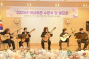 뉴스펀치 김길룡 기자 | 횡성군은 12일 여성회관 대강당에서 강사와 수강생 등 250여 명이 참석한 가운데 2025년 여성회관 교육 수료식 및 발표회를 성황리에 개최했다. 올해 여성회관 교육프로그램은 4개 분야 31개 과목을 상하반기 각 4개월씩 운영하여 568명이 수료했으며, 수료식은 그간 수료생들의 성실한 참여와 노력을 격려하는 자리로 마련됐다. 2부 발표회에서는 기타교실을 포함한 총 6개 강좌가 다채로운 공연을 선보였으며 관람객들은 수강생들의 열정과 성과를 함께 나누며 큰 호응을 보냈다. 또한, 캘리그라피, 서양화, 섬유채색, 핸드페인팅, 어반스케치 등 5개 강좌의 작품 전시회가 함께 열려 수강생들이 그동안 갈고닦은 솜씨를 선보이는 기회가 됐다. 특히 자격증 취득 과정에서는 올 상반기에만 GTQ포토샵 1급 등 4개 과목에서 총 26개의 자격증을 취득했으며, 연말 자격시험 결과까지 더할 경우 수료생들의 자격 취득 실적은 더욱 늘어날 전망이다. 김홍석 군 가족복지과장은 “여성회관 교육 프로그램을 통해 군민들이 새로운 지식과 기술을 배우며 자기계발과 역량을 높이고, 건전한 여가와 문화를 향유할 수