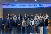 뉴스펀치 김용희 기자 | 제주시는 12일 제주대학교 아라컨벤션홀 대회의실에서 ‘2026년 제26기 제주시 여성대학 입학식’을 개최했다. 이날 입학식은 위탁운영 기관인 제주대학교 김인중 평생교육원장과 입학생 등 48명이 참석한 가운데 진행됐다. 제주시 여성대학은 급변하는 사회 변화에 부응하고 여성의 잠재 역량을 키울 수 있도록 다양한 분야의 교육과정을 지원해 지역사회 공동체 리더로 성장할 기회를 제공하고 있다. 학사 운영은 3월 12일 개강을 시작으로 매주 목요일 오후 7시부터 2시간씩 교육이 진행되며, 12월 3일까지 총 29주 과정으로 운영된다. 주요 강좌는 ▲자기계발 ▲경제 ▲인문 ▲리더십 ▲법률 ▲젠더역량 ▲자치활동 ▲현장체험 등으로 구성되며, 매주 각 분야 전문강사를 초빙해 강의와 프로그램을 진행한다. 한편, 제주시 여성대학은 1999년도 처음 개설된 이후 지난해까지 1,750명의 수료생을 배출했다. 안진숙 여성가족과장은 “여성의 사회참여가 늘어나면서 배움에 대한 관심도 높아지고 있다”며, “앞으로도 여성대학의 내실 있는 교육사업 추진을 위해 노력하겠다”고 말했다.