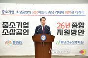 뉴스펀치 강영선 기자 | 김태흠 충남도지사는 27일 대전에서 열린 ‘2026년 충청권 중소기업인 신년 인사회’에 참석해 중소기업인들을 격려하고 새로운 도약을 함께 다짐했다. 중소기업중앙회가 주최한 이번 행사에는 김 지사와 충청권 자치단체장, 중소기업인, 관련 기관·단체장 등 500여 명이 참석했다. 이날 참석자들은 새해를 맞아 충청권 중소기업 발전을 위한 의지를 다졌으며, 지역경제 활성화를 위한 소통·협력의 시간을 가졌다. 이 자리에서 김 지사는 “도내 중소기업은 34만 개로 전체 기업의 99%를 차지하고 있다”라면서 “도민의 일터이자 지역경제의 근간인 중소기업의 성장과 발전은 지역경제는 물론 나라 경제에도 중차대한 과제”라고 짚었다. 이어 김 지사는 “서울, 경기에 이은 ‘대한민국 3대 경제권’에 걸맞게 지역경제의 뿌리인 중소기업에 전폭적인 투자와 지원을 아끼지 않을 것”이라며 “위기에 맞서 기업 역량과 경쟁력을 높일 수 있도록 활력을 불어넣을 것”이라고 강조했다.