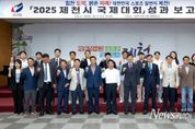 뉴스펀치 김길룡 기자 | 제천시는 지난 1일 제천시청 5층 청풍호실에서 '2025년 제천시 국제대회'성과보고회를 개최했다. 보고회에는 김창규 제천시장, 박영기 제천시의회 의장, 김경석 대한롤러스포츠연맹 회장(이상 공동조직위원장), 장재돈 대한체조협회 고문과 안성국 제천시체육회장(집행위원장), 오재성 제천시체조협회장, 최호열 제천시롤러스포츠연맹회장(이상 공동 사무총장) 및 유관기관, 단체장 3명과 종목단체 임원 및 회원 50여 명이 참석했다. 이날 보고회는 올해 제천시에서 열린 국제대회인 '2025 기계체조 아시아선수권대회(6.1.~6.15.)'와 '2025 아시아 롤러스케이팅 선수권대회(7.19.~7.30.)'의 성공 개최를 기념하고, 대회 관계자들의 노고를 격려하며 성과를 공유하는 자리였다. 행사는 유공 기관·단체에 대한 감사패 수여와 유공자 표창 순으로 진행됐다. 제천시장 감사패는 대회 유치와 개최를 주관한 ▲대한롤러스포츠연맹(회장 김경석) ▲제천시롤러스포츠연맹(회장 최호열) ▲대한체조협회(공석) ▲제천시체조협회(회장 오재성)에 수여됐다. 또한, 두 대회를 실질적으로 준비하고 집행한 ▲제천시체육회(회장 안성