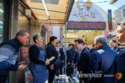 뉴스펀치 김용희 기자 | 이재명 대통령은 13일 오후, 충북 청주 사창시장을 방문하여 민생 현장의 활기를 점검하고 지역 주민 및 상인들과 진솔한 소통의 시간을 가졌다. 청주 사창시장은 조선시대 양곡을 보관했다는 데에서 유래를 찾을 수 있는 유서 깊은 곳으로, 1980년대 현대적 시장의 면모를 갖춘 이래 지역 경제의 중심이자 종합시장으로서 소임을 다해오고 있다. 상인회장의 안내로 시장 곳곳을 둘러본 이 대통령은 장을 보러 나온 시민들과 반갑게 인사를 나누었다. 사창시장을 찾은 시민들은 뜨거운 박수와 환호로 대통령을 맞이했으며, 상인들은 “사창시장을 방문해 준 첫 대통령”이라며 반가움을 표했다. 상인들은 대통령의 손을 맞잡고 “더 살기 좋은 나라를 만들어 달라”, “건강을 잘 챙기며 일해 달라”는 격려와 응원을 전하며 따뜻한 포옹을 나누기도 했다. 특히 이 대통령은 시장 내 한 두부가게를 방문해 국산 콩으로 두부를 만드는 과정을 세심하게 살핀 뒤, 가게 안 평상에서 상인회장 및 주인 부부와 나란히 앉아 갓 만든 즉석 두부를 시식하며 담소를 나누었다. 이 대통령이 국산 콩과 수입 콩 두부의 선호도를 묻자, 주인은 “국산 콩이 두