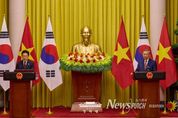 뉴스펀치 김용희 기자 | 이재명 대통령은 베트남 국빈 방문을 통해 베트남 신 지도부와의 정치적인 신뢰를 강화하는 한편, 인프라·에너지 등 분야로 협력을 더욱 고도화하는 계기를 마련했다. 위성락 국가안보실장은 23일(현지시간) 오후 베트남 하노이 프레스센터에서 브리핑을 통해 양국 정상회담 결과를 발표했다. 위 안보실장은 "이 대통령의 방문은 베트남이 개혁·개방 정책 40주년을 맞아 또 럼 당서기장 겸 국가주석의 강력한 리더십 하에 선진국을 향한 국가 발전을 본격 추진해 나가는 전환기적 시점에서 이뤄졌다는 의미가 있다"고 밝혔다. 위 안보실장은 이번 방문 성과에 대해 먼저, "베트남 신 지도부와의 정치적인 신뢰를 강화해 한-베트남 관계에 비약적인 발전 기반을 마련했다"고 평가했다. 또 "3월에 싱가포르, 필리핀 방문과 4월 인도네시아 대통령의 국빈 방한으로 이어지는 일련의 정상 외교 흐름 속에서 이번 베트남 국빈 방문은 우리의 아세안 내 핵심 협력국인 베트남과의 전략적 협력을 더욱 강화하는 중요한 계기가 됐다"고 덧붙였다. 위 안보실장은 또 "양 정상은 굳건한 상호 신뢰를 바탕으로