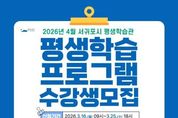 뉴스펀치 김용희 기자 | 서귀포시는 시민의 다양한 배움의 기회를 제공하기 위해 2026년 4월 개강 서귀포시 평생학습관 프로그램 수강생을 모집한다고 밝혔다. 이번 교육과정은 직업능력, 인문교양, 문화예술 등 3개 분야, 15개 강좌, 총 235명의 수강생을 모집하여 운영할 예정이다. 수강신청은 16일 오전 9시부터 25일 오후 6시까지 서귀포시 평생학습관 홈페이지에서 온라인을 통한 선착순 접수로 진행되며, 정원 미달 강좌는 26일부터 27일까지 이틀간 추가접수를 받는다. 모집 대상은 만 19세 이상 서귀포시민이며, 서귀포시민을 우선으로 선발하고 타지역 거주자는 후순위로 선정된다. 특히, 지역청년의 성장을 지원하기 위해 직업능력 분야 2개 과정은 청년층(만19세~39세)를 우선 선발(정원의 30%)하여 운영한다. 서귀포시 관계자는 “평생학습관에서는 자격증 취득과정 운영뿐만 아니라, 직장인과 시민들의 학습 접근성을 높이기 위해 주말 및 야간 프로그램을 확대하여 시민들의 평생학습 참여 기회를 넓히고자 노력하고 있다”라고 말했다.