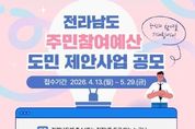 뉴스펀치 김용희 기자 | 전라남도는 2027년 예산 편성을 위한 주민참여예산 제안사업 공모를 5월 29일까지 진행한다고 밝혔다. 주민참여예산제도는 지자체의 예산 과정에 주민이 직접 참여해 지방재정 운영의 투명성과 민주성을 높이는 제도다. 공모 대상은 전남도 전역에 파급효과가 있는 주민 복리증진과 지역발전 사업으로, 기획·사회, 행정·환경, 경제·관광․문화, 건설·소방, 농·수산 등 모든 분야에 걸쳐 제안할 수 있다. 전남도에 주소 또는 직장 소재지를 둔 사람이면 누구나 신청할 수 있다. 접수된 제안은 담당부서의 타당성 검토, 주민참여예산위원회 심사 등을 거쳐 최종 선정될 예정이다. 제안서는 ‘주민e참여’ 또는 전남도 누리집을 통해 온라인으로 접수하거나, 전남도청 예산담당관실로 우편 또는 방문해 제출하면 된다. 제갈래원 전남도 예산담당관은 “주민참여예산제도는 주민의 목소리가 도정에 반영되는 중요한 제도”라며 “도민 한 분 한 분의 다양한 의견이 정책으로 이어지도록 많은 관심과 참여를 부탁드린다”고 말했다.