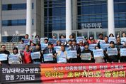 뉴스펀치 김용희 기자 | 전남대학교 교수·학생·교직원·동문이 5·18민중항쟁의 헌법 전문 수록을 민주주의의 출발점을 바로 세우는 문제로 규정하고, 초당적 개헌 추진을 촉구했다. 23일 전남대학교에 따르면, 전남대학교 구성원단체(교수·학생·교직원·졸업생)는 이날 오후 2시 전남대학교 민주마루 앞에서 '5·18 민중항쟁의 헌법 전문 수록에 여야는 초당적으로 동참하라'는 공동 기자회견을 개최했다. 이날 참석자들은 5·18 정신의 헌법 전문 수록을 위한 국회의 개헌안 의결과, 오는 6월 지방선거와 연계한 개헌 국민투표 추진을 앞둔 상황에서 여야의 초당적 결단이 필요하다고 강조했다. 참석자들은 특히 헌법과 헌법 전문의 의미를 짚으며, 이번 개헌의 본질을 ‘정체성의 복원’으로 규정했다. 헌법이 국가 운영의 원칙을 제시하는 규범이라면, 헌법 전문은 그 원칙이 어디에서 비롯됐는지를 밝히는 선언이자 대한민국 민주주의의 뿌리를 설명하는 출발점이라는 설명이다. 또한 현행 헌법 전문이 1987년 개정 당시의 역사적 한계로 인해 5·18민중항쟁의 정신을 담아내지 못했다고 지적하며, 이번 개헌은 그 미완의 과제를 바로잡는