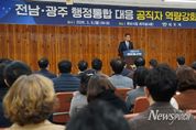 뉴스펀치 김용희 기자 | 전라남도와 광주광역시의 행정통합이 법제화되며 ‘호남권 메가시티’ 실현이 가시화되는 가운데, 목포시가 통합 이후 지역의 미래 청사진을 마련하기 위한 선제적 대응에 나섰다. 시는 지난 9일 시청 회의실에서 전 직원을 대상으로 '전남·광주 행정통합 대응 공직자 역량강화 교육'을 실시했다. 이번 교육은 지난 3월 5일 국회 의결을 거쳐 공포된 '전남광주통합특별시 설치를 위한 특별법'에 따라 오는 7월 통합특별시 출범을 목표로 추진되고 있는 행정통합에 체계적으로 대비하기 위해 마련됐다. 이날 교육은 전남연구원 김대성 상생협력단장이 강사로 나서 ‘전남광주 통합특별법의 구조와 주요 내용’과 ‘통합 이후 지방정부 역할 변화 및 목포시의 전략적 대응 방향’을 중심으로 설명하고 질의응답을 진행했다. 특히 전남·광주 행정통합 추진 과정과 특별법에 담긴 주요 특례 사항을 살펴보고, 향후 행정·재정·권한 구조 변화에 대비해 지방정부가 준비해야 할 과제와 전략 방향을 공유했다. 아울러 목포항을 중심으로 한 해양·물류 기능, 해상풍력 및 재생에너지 산업, 수산·해양 산업, 해양·문화관광 산업 등 목포