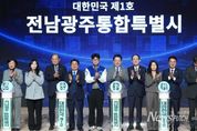 뉴스펀치 김용희 기자 | 전라남도와 광주광역시는 전남광주통합특별법 국회 통과를 기념해 4일 나주 한국에너지공과대학 대강당에서 시도민 보고대회를 열어, 오는 7월 1일 출범하는 통합특별시의 비전과 향후 계획을 공유했다. 전남도지사, 광주시장, 시도의회 의장, 범시도민협의회 위원, 시도민 등 700여 명이 참석한 이날 행사는 ▲전남광주통합특별법 브리핑 ▲시도민이 기대하는 변화(QR코드 투표) ▲내가 바라는 전남광주통합특별시 희망 메시지 발표(시도민 대표 10명) ▲미래 다짐 퍼포먼스와 기념촬영 순으로 진행됐다. 정보무늬(QR코드) 투표로 진행된 ‘시도민이 기대하는 변화’에서는 더 많은 일자리와 기업 유치, 인구 감소 완화와 청년 정착, 의료·복지 서비스 개선, 교통·생활 인프라 확충 순으로 응답이 집계돼 지역경제 활성화에 대한 기대를 읽을 수 있었다. 분야별 시도민 대표 10명은 ‘내가 바라는 전남광주통합특별시’에서 통합을 계기로 청년이 정착할 일자리 도시, 첨단산업과 1차 산업의 조화를 통한 균형있는 발전, 문화도시 기반 조성을 통한 문화 향유기회 확대 등을 제시, 향후 전남광주통합특별시가 나아가야 할 시대적 요