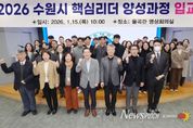 뉴스펀치 박상훈 기자 | 수원특례시는 15일 아주대학교 율곡관에서 ‘2026년 제12기 수원특례시 핵심리더 양성 과정 입교식’을 열었다. 입교식에는 이재준 수원특례시장, 최기주 아주대학교 총장, 권혁성 아주대학교 공공정책대학원장, 6급 공무원 교육생 35명 등이 참석했다. 수원특례시 핵심리더 양성 과정은 시정을 선도할 중간관리자급 핵심 인재 양성을 목표로 하는 장기 교육과정으로 12월 1일까지 11개월간 운영된다. 행정 환경 변화에 대응하는 핵심 역량을 중심으로 리더십, 직무 전문성, 정책연구 등 직급 맞춤형 교육을 한다. 실무와 미래 행정을 아우르는 역량을 강화하고, 교육 성과가 현장 행정으로 이어져 시민에게 더 가까이 다가가는 공직자로 성장하도록 지원한다. 최기주 아주대학교 총장은 “특례시에 걸맞은 공직자 교육 프로그램을 운영하겠다”며 “수원시와 긴밀하게 협력해 미래를 이끌 핵심리더를 양성하는 데 적극적으로 힘을 보태겠다”고 밝혔다. 이재준 수원시장은 35명 교육생 한 명 한 명을 호명하며 “이번 교육과정은 수원의 미래를 책임질 핵심 리더로 성장하는 출발점”이러며 “보고서 작성, 인