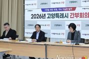 뉴스펀치 박상훈 기자 | 고양특례시가 14일 백석별관에서 ‘2026년 상반기 핵심사업 추진계획’을 주제로 간부회의를 열고, 상반기 핵심사업의 속도감 있는 추진과 시민 체감 성과 창출을 위한 상반기 시정 운영 방안을 논의했다. 이동환 시장은 먼저 서울 시내버스 파업과 관련해 “비상수송대책을 신속히 가동해 출퇴근길 시민 불편을 최소화해야 한다”며 재난안전문자 발송, 임시 노선 운행, 마을버스 집중 배차 등 긴밀한 대응을 당부했다. 또한 “행정은 대응 시기에 따라 결과가 달라진다”며 시민 불편이 예상되는 상황에 대한 사전 대응과 유연한 행정을 강조했다. 이어 최근 한파와 강풍으로 전국에서 안전사고가 잇따르고 있는 점을 언급하며, 겨울철 자연재난 대응 강화도 주문했다. 이 시장은 도로·육교·교량 등 주요 시설물 제설과 안전을 철저히 관리하고, 독거 어르신과 기초생활수급자 등 취약계층에 대한 안부 확인과 보호에도 각별히 신경 써 달라고 당부했다. 미국 라스베이거스와 일본 하코다테 공무국외출장 소회도 밝혔다. 이 시장은 “글로벌 AI 인프라 투자·개발회사와 업무협약 체결, CES 2026 참관, 자매도시 교류 등을 통해