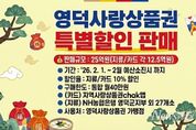 뉴스펀치 박세훈 기자 | 영덕군은 설 명절을 앞두고 지역 상권 활성화와 소비 촉진을 위해 2월 1일부터 ‘영덕사랑상품권’을 10% 특별 할인 판매한다. 영덕군은 지난 1월 할인 판매의 높은 관심과 설 명절 수요를 반영해 2월 판매 규모를 기존의 두 배인 25억 원(지류·카드 각 12.5억 원)으로 확대했다. 다만, 보다 많은 이용자가 구매할 수 있도록 1인당 구매 한도를 월 40만 원으로 제한키로 했다. 상품권은 NH농협은행 영덕군지부를 포함한 관내 금융기관 28개 판매대행점에서 구매할 수 있으며, 카드형 상품권은 지역사랑상품권 chak앱을 통해 충전하거나 판매대행점에서 오프라인으로 충전할 수 있다. 황정기 일자리경제과장은 “설 연휴 기간 지역 소비를 촉진하고 더 많은 군민이 혜택을 누릴 수 있도록 25억 원 한도 내에서 할인 행사가 이뤄지는 만큼 예산이 소진되기 전 혜택을 누리시길 바란다”라고 전했다.