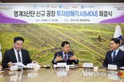 뉴스펀치 박세훈 기자 | 경주시는 ㈜태웅산업, ㈜수시스템과 내남면 명계3일반산업단지 내 공장 신설 및 본사 이전을 위한 투자양해각서(MOU)를 체결했다고 15일 밝혔다. 지난 13일 시청 내 대외협력실에서 열린 협약식에는 주낙영 경주시장을 비롯해 김필규 ㈜태웅산업 대표이사, 방예현 ㈜수시스템 대표이사 등 기업 관계자들이 참석했다. 이번 협약에 따라 두 기업은 명계3산업단지 동일 부지 내 필지를 분할 활용해 신규 공장을 건립할 계획이다. ㈜태웅산업은 약 7,920㎡ 규모 부지에 77억 원을 투자해 자동차 부품 생산 공장을 신설하고 15명을 신규 고용할 예정이다. ㈜수시스템은 약 3,967㎡ 부지에 48억 원을 투자해 본사를 경주로 이전하고 생산시설을 구축하며 27명을 신규 채용할 계획이다. 두 기업의 총 투자 규모는 125억 원, 고용 규모는 42명으로 이번 투자가 명계3일반산업단지 활성화와 지역 자동차 부품 산업 경쟁력 강화에 기여할 것으로 기대된다. ㈜태웅산업은 1998년 설립돼 2000년 경주 외동으로 이전한 이후 자동차 및 전자제품 부품을 생산하며 지역 자동차 부품 산업과 함께 성