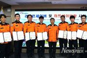 뉴스펀치 박세훈 기자 | 경북소방본부는 지난 29일 소방본부 7층 작전회의실에서 위급한 재난·사고 현장에서 신속하고 헌신적인 대응으로 소중한 생명을 지켜낸 구조대원과 구급대원의 공로를 기리기 위해 라이프세이버 및 하트세이버왕 수여식을 개최했다. 지난 한 해 동안 각종 위험 현장에서 인명 구조에 헌신한 소방위 유영철, 소방장 박준현, 소방장 임창래 등 3명은 뛰어난 구조 활동을 인정받아 제5회 라이프세이버로 선발됐다. 또한 지난해 하반기 구급 현장에서 심정지 환자를 소생시킨 소방위 황성구, 소방위 김태현, 소방장 김기준, 소방장 김제규, 소방교 김태익 등 5명은 제9회 하트세이버왕으로 선정돼 표창장을 수여 받았다. 이번에 선정된 8명의 대원들은 모두 각자의 현장에서 침착한 판단과 숙련된 대응 능력을 바탕으로 전문적인 구조·응급처치를 실시해 환자의 생명을 되살린 공적을 인정받았다. 라이프세이버는 재난 및 각종 사고 현장에서 인명 구조 등 특별한 공적을 세운 구조대원에게 수여하는 인증이며, 하트세이버왕은 신속하고 전문적인 응급처치로 생명을 소생시켜 하트세이버를 5회 수여받은 구급대원에게 부여된다. &n