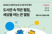 뉴스펀치 이현승 기자 | 대전 서구 공공도서관(갈마·가수원·둔산·월평·어린이도서관)은 내달 12일부터 18일까지 ‘도서관 속 작은 펼침, 세상을 여는 큰 열림’을 주제로 다양한 독서 문화 프로그램을 운영한다. 이번 프로그램은 도서관의 날(4월 12일)과 도서관 주간(4월 12~18일)을 맞아 기획됐다. 기간 동안 기념 공연으로 △갈마도서관 ‘국악으로 만나는 K-MUSIC’ △가수원도서관 ‘현 작가의 베스트셀러(독서 권장 마술쇼)’ △월평도서관 ‘드로잉 매직쇼: 크레용용’ 등이 열린다. 또한 모든 도서관에서 체험 활동인 ‘페이퍼 플라워 원데이 클래스’·동화 속 머그잔 만들기, 이벤트 활동인 그림책 원화 전시·사서 북 큐레이션(온오프라인)·도서 두 배 대출·독서 명언 포춘쿠키 등이 진행된다. 공연 및 체험 프로그램은 내달 1일 오전 10시부터 각 도서관 홈페이지에서 선착순 모집하며, 원화 전시 등 이벤트는 기간 중 누구나 참여할 수 있다.