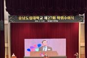 뉴스펀치 이현승 기자 | 충남도립대학교 졸업생 344명이 배움의 시간을 마치고 지역과 사회를 향한 새로운 출발선에 섰다. 충남도립대학교는 11일 대학 해오름관 다목적실에서 ‘제27회 학위수여식’을 개최하고 전문학사와 학사 학위를 수여했다. 이날 행사에는 김태흠 충남도지사를 비롯해 정광섭 충남도의회 부의장과 도의원, 청양군수, 군의회 의장 등 주요 기관장이 참석했으며, 졸업생과 학부모, 교직원 등 450여 명이 함께해 졸업생들의 앞날을 축하했다. 무엇보다 올해 학위수여식은 도정을 책임지고 있는 김태흠 지사가 직접 참석해 졸업생 한 사람 한 사람의 출발을 응원했다는 점에서 의미를 더했다. 김태흠 지사는 격려사와 함께 전체 수석에게 표창을 수여하며 지역 인재에 대한 기대를 전했다. 김태흠 지사는 “충남도는 청년이 지역을 떠나지 않아도 되는 환경을 만들기 위해 산업과 일자리를 키우고 주거와 정주 여건을 지속적으로 개선하고 있다”며 “청년들이 이곳에 뿌리내리고 살아가며 미래를 설계할 수 있도록 기반을 더욱 단단히 다져 나가겠다”고 밝혔다. 그러면서 졸업생들에게 ‘수처작주(隨處作主)