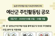 뉴스펀치 이현승 기자 | 예산군행복마을지원센터는 주민의 지역개발사업 참여를 확대하고 주민활동팀의 자립체계 구축을 지원하기 위해 ‘농촌지역개발사업 지속관리체계 구축’ 주민활동팀을 4월 13일까지 모집한다고 밝혔다. 이번 공모는 단순한 활동비 지원을 넘어 지역 현안을 스스로 해결하고 지속 가능한 활동 기반 마련에 목적이 있으며, 공모 대상은 일반농산어촌개발사업을 통해 발굴·양성된 조직으로 관내 비영리민간단체와 법인, 협동조합, 예비사회적기업 등이다. 모집 유형은 △지역자원 상품화와 소득 증대를 위한 ‘로컬 비즈니스’ △지역 정체성 확립과 관광자원 발굴을 위한 ‘마을 기록 아카이빙’ △사회 안전망 구축과 공동체 회복을 위한 ‘공동체 공익활동’ 등 3개 분야다. 각 분야별 4팀씩 총 12팀을 선정하며, 심사 결과에 따라 팀당 최대 1000만 원 이내로 차등 지원한다. 신청을 희망하는 단체는 4월 13일까지 센터 누리집 또는 방문 접수하면 되며, 자세한 사항은 행복마을지원센터로 문의하면 된다. 오윤석 센터장은 “이번 사업은 주민들이 지역개발에 주체적으로 참여하고 지속 가능한 활동 기반 마련에 의