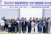 뉴스펀치 이현승 기자 | 충청광역연합이 4개 시·도(대전·세종·충북·충남) 파견 직원들의 정책 이해도를 높이고 조직 결속력을 다지기 위한 본격적인 역량 강화 행보에 나섰다. 충청광역연합은 3월 26일 보람동 행복누림터에서 전 직원을 대상으로 ‘2026년 충청광역연합 직원 역량강화 워크숍’을 개최했다고 밝혔다. 이번 워크숍은 연합 직원들이 연합의 설립 취지와 주요 정책을 빠르게 숙지하고 향후 충청권 행정환경 변화에 능동적으로 대응할 수 있도록 마련됐다. 이날 워크숍에서는 최민호 충청광역연합장이 직접 강사로 나서 ‘행정환경에 따른 연합의 역할’을 주제로 특강을 진행했다. 최 연합장은 특강을 통해 초광역 협력체의 필요성을 강조하며, 충청권의 공동 번영을 위한 직원들의 사명감과 역할을 당부했다. 특히, 현대의 시대정신이 ‘에너지 확보, 기술 인력 양성, 기업 우호적 환경 조성, 물관리’임을 강조하며, 시대정신을 반영한 정책을 구상하고 추진하는 것이 공직자에게 필요한 자세라고 힘주어 말했다. 이어지는 강의에서는 대전연구원 염인섭 책임연구위원이 ‘연합의 출범 배경 및 역사, 주요 정