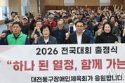 뉴스펀치 이현승 기자 | 대전 동구는 지난 23일 동구청 대회의실에서 ‘2026년 동구장애인체육회 전국대회 출정식’을 개최했다고 밝혔다. 이날 출정식에는 박희조 동구청장을 비롯해 오관영 동구의회 의장, 종목별 협회 임원 및 선수 등 60여 명이 참석했으며, 출정복 전달과 선수대표 결의문 낭독을 통해 선수단의 각오를 다졌다. 특히 참가 선수들은 그동안 갈고닦은 기량을 바탕으로 정정당당한 경기와 최선을 다하는 자세로 동구의 명예를 드높일 것을 다짐했다. 구는 이번 출정식을 통해 파크골프, 게이트볼, 론볼 등 3개 종목 선수들의 사기 진작과 화합을 도모하고, 장애인 체육 활성화를 위한 지원을 지속적으로 확대해 나갈 방침이다. 선수단은 오는 9월부터 11월까지 ▲론볼(9월 29일 인천광역시장배 전국대회) ▲게이트볼(10월 23일 금산인삼배) ▲파크골프(10월 31일 중앙회장배 전국대회) 등 각종 전국대회에 순차적으로 출전할 예정이다. 박희조 동구청장은 “장애를 넘어 끊임없이 도전하는 선수들의 열정과 노력에 진심어린 응원을 전한다”며 “앞으로도 누구나 차별 없이 스포츠를 즐기고 역량을 펼칠 수