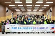뉴스펀치 정홍균 기자 | 완주군이 농촌 일손 부족 해소를 위해 입국한 필리핀 외국인 계절근로자들을 직접 맞이하며 본격적인 영농 지원에 나섰다. 완주군은 17일 완주군농업기술센터에서 필리핀 랄로시와 미나시에서 입국한 외국인 계절근로자 83명을 대상으로 환영식을 개최했다. 이날 행사에는 유희태 완주군수와 계절근로자, 고용 농가주 등 관계자 150여 명이 참석해 새로운 출발을 함께 축하했다. 이번에 입국한 계절근로자들은 완주군이 필리핀 지방정부와 직접 체결한 업무협약(MOU)에 따라 선발된 인력으로, 법무부 계절근로자 프로그램에 따라 최대 8개월간 체류하며 딸기 등 동절기 시설작물 재배 농가에 배치돼 농번기 일손을 지원하게 된다. 환영식에서는 겨울옷과 방한용품, 작업조끼 등이 전달됐으며, 근로자들의 안전한 근무와 원활한 농가 적응을 위한 안전교육과 배치 안내도 함께 진행됐다. 유희태 완주군수는 환영사를 통해 “완주 농업의 든든한 동반자가 되어주기 위해 먼 길을 온 계절근로자 여러분을 진심으로 환영한다”며, “낯선 환경에서도 불편함 없이 생활하고 일할 수 있도록 주거 환경 점검부터 인권 보호,