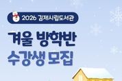 뉴스펀치 정홍균 기자 | 김제시립도서관은 겨울방학을 맞아 관내 초등학생을 대상으로 겨울 독서교실과 겨울 방학반 프로그램을 오는 2026년 1월 12일부터 2월 13일까지 운영한다고 밝혔다 이번 프로그램은 방학 기간 동안 전문 강사 선생님들과 함께 다양한 주제를 직접 체험해 볼 수 있도록 구성됐다. 겨울 독서교실은 2026년 1월 12일 월요일부터 1월 16일 금요일까지 5일간 오전 9시부터 12시까지 시립도서관 5층 배움터 3에서 진행된다. “나는 누구? 여긴 어디? 난, 충분히 멋져!라는 주제로 진행되며 참가대상은 관내 초등학교 2학년부터 5학년까지이며, 총 25명을 홈페이지를 통해 선착순 모집한다. 또한 추가로 예비 인원 5명을 후보로 선정할 예정이다. 겨울 방학반은 2026년 1월 19일 월요일부터 2월 13일 금요일까지 오전 9시 30분부터 11시 30분까지 시립도서관에서 진행되며“동화요리”, “우리집 소품 만들기”, “창의 미술”, “3D펜”등 10개 강좌로 진행된다. 참가대상은 관내 초등학교 1학년부터 6학년까지이며 과목당 10명 정도로 홈페이지를 통해 선착순 모