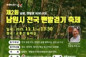 뉴스펀치 정홍균 기자 | 제2회 남원시 전국 맨발걷기 축제, 11월 1일 교룡산 둘레길에서 개최 남원시가 주최하고 맨발걷기국민운동본부 남원지회가 주관하는 ‘제2회 남원시 전국 맨발걷기 축제’가 오는 11월 1일 오후 1시 30분, 교룡산 둘레길 일원에서 열린다. 이번 행사는 남원시와 맨발걷기국민운동본부가 공동으로 주최하며, 전국 각지에서 참가자들이 모여 건강과 힐링, 그리고 문화를 함께 나누는 걷기 축제의 장이 될 전망이다. 참가자들은 황톳길과 소나무 숲길, 역사 탐방로를 따라 걸으며 단순한 걷기를 넘어 마음의 평안과 자연 치유의 시간을 갖게 된다. 또한 교룡산성의 역사적 의미를 배우고 지역 문화의 아름다움을 체험할 수 있는 다양한 프로그램도 마련된다. 행사 당일에는 축하공연, 맨발걷기 특강, 치유 사례 발표, 맨발 산행 등이 이어지며, 선착순 500명에게는 생수와 떡, 접이식 배낭 등이 제공된다. 이번 맨발걷기 코스에는 기존 교룡산 임도와 등산로 노선을 활용하여 남원시가 총 사업비 25억원을 들여 지난 4월 착공 후 6개월 만에 완공한 코스로, 1.1km의 황톳길과 1.6