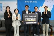 뉴스펀치 정홍균 기자 | ㈜전북지역대학연합기술지주가 지역 경제 활성화와 나눔문화 확산을 위한 전주형 착한 소비자 운동인 ‘전주 함께장터’에 동참했다. ㈜전북지역대학연합기술지주는 29일 전주시장실에서 우범기 시장과 지건열 대표이사, 채경석 본부장 등 양 기관 관계자들이 참석한 가운데 ‘함께장터 기부금 전달식’을 가졌다. 이 자리에서 ㈜전북지역대학연합기술지주는 전주시에 ‘전주 함께장터’ 추진을 위한 500만 원의 기부금을 전달했다. 이날 기탁된 기부금은 ‘노동자 기(氣)살리기’의 취지에 맞춰 노동자의 아침 결식 해소와 먹거리 접근성 향상을 위해 진행하는 팔복동 산업단지 내 노동자들의 아침밥 지원 사업인 ‘매주 수요일엔 수요 든든 밥상’에 사용될 예정이다. 시는 지난 9월부터 시작된 이 사업을 통해 현재까지 2440여 명의 노동자에게 든든한 아침밥을 지원했다. 시는 각계각층의 후원을 토대로 올 연말까지 이 사업을 지속할 예정이다. 지건열 ㈜전북지역대학연합기술지주 대표이사는 “나눔의 가치를 확산하는 함께장터에 참여하게 되어 보람을 느낀다”면서 “지역 사희의 발전에 앞장서 지역과