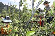 뉴스펀치 정홍균 기자 | 무주군이 잦은 기상 이변으로 인한 사과 수급 불안 요인을 차단하고 일손 부족으로 어려움을 겪는 농가들을 돕기 위해 현장에서 직접 사과 수확(후지)을 지원하고 있다고 밝혔다. 이를 위해 지도·연구직 공무원과 각 읍면 상담소장 등 민간 전문가 30명으로 지원반을 구성한 무주군은 오는 10월 말까지 무주읍을 비롯한 6개 읍면을 순회하며 현장 지도에 주력할 방침이다. 무주군에 따르면 지역별로 사과의 당도 및 산도, 전분 지수 등 익은 정도를 파악해 수확 시기를 협의하고 있으며 저온저장고 소독 및 온·습도 관리 요령 등에 대해서도 공유 중이다. 또한 겹무늬썪음병과 갈색무늬병이 발생한 과원을 대상으로 방제 상담을 진행하고 과일 수확 후에 진행하는 ‘엽면시비(잎에 직접 비료 주기)’ 기술에 대해서도 안내와 상담을 병행한다. 김준회 무주군농업기술센터 기술연구과 소득작목팀장은 “예년에 비해 8월 기온이 떨어지고 비가 자주 내려 사과 크기 등 생육 상황은 다소 개선된 면이 있지만 전체 생산량이라던가 출하량은 소폭 감소할 것으로 예상하고 있다”라며 “1년 내 농사짓느라 고생하는 농가들이 만족할