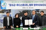 뉴스펀치 정홍균 기자 | 장수군은 26일 군청 회의실에서 B2B 식자재 전문 기업인 푸디스트 주식회사(사조그룹 계열)와 지역 경제 활성화와 농가 상생 발전을 위한 전략적 업무협약을 체결했다고 밝혔다. 이날 협약식에는 최훈식 장수군수를 비롯해 푸디스트 주요 실무·책임자가 참석해 군 농특산물·레드푸드 판로 확대와 지역 일자리, 축제 홍보, 사회공헌으로 이어지는 다양한 협력 의지를 공유했다. 장수군 대표 축제인 ‘장수한우랑사과랑축제’로 전국적으로 유명해진 장수 농특산물과 레드푸드에 대한 소비자들에 관심이 매우 높아졌다. 이에 푸디스트는 장수 농가와의 직거래를 확대해 농특산물 수급 불안정을 완화하고 합리적인 가격체계를 마련함으로써 지역 농업의 지속 가능성을 높이고자 협약을 추진하게 됐다. 이번 협약으로 장수군과 푸디스트는 한우, 사과, 토마토, 오미자 등 군의 대표 농특산물과 레드푸드에 대해 제품 기획, 상품 개발, 유통 등 전반에 걸친 전략적 협력 체계를 구축해 안정적인 판로를 개척한다. 더불어 장수 지역 농가와 직접 계약을 체결해 선제적으로 물량을 확보하고 기업과 농민이 함께 성장할 수 있