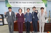 뉴스펀치 조평훈 기자 | 대구광역시 남구의회 의원연구단체 ‘대구 남구 살림살이 연구회’는 10월 22일 남구의회 제2소회의실에서 ‘대구 남구 재정 운용 효율성 및 효과성 분석 연구’ 최종보고회를 개최했다. 이번 연구는 지난 6월부터 진행됐으며, 남구 재정의 구조적 문제를 다각도로 검토하기 위해 9월 중간보고회를 열고, 경기도 광명시의 우수사례를 비교·분석하는 등 현장 중심의 검토 활동을 이어왔다. 이날 보고회에서는 중간보고에서 제시된 건의사항과 선진사례 분석 결과를 종합한 최종보고서 내용이 발표됐으며, 남구 재정운용의 효율화 방안을 주제로 심도 있는 토론이 진행됐다. 연구단체 구성 의원들은 “이번 연구용역을 통해 남구 재정의 현황과 개선 방향을 구체적으로 확인할 수 있었다”며, “의회의 감시와 견제 기능을 강화해 구민의 눈높이에 맞는 합리적 예산 운영이 이루어지도록 노력하겠다”고 밝혔다. 강민욱 연구단체 대표의원은 “지방재정은 단순한 숫자의 조정이 아니라 지역의 미래를 설계하는 전략적 수단”이라며, “이번 연구를 통해 구조적 문제를 진단하고 구민이 체감할 수 있는 효율적 재정운용 방향을 마련해, 지