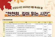 뉴스펀치 천세두 기자 | 제주시 우당도서관은 제주의 가을, 바람처럼 스며드는 책 향기가 시민들의 일상에 머무를 수 있도록 오는 9월 특별한 한 달을 준비했다. 9월 독서의 달을 맞아 ‘천천히, 깊이 읽는 시간’을 주제로 작가 강연, 전시, 북큐레이션, 독서 체험 등 19개 프로그램을 운영해 시민 누구나 책과 함께 행복해질 수 있는 시간을 제공한다. 주요 프로그램으로는 ‘이상한 무인 편의점’ 시리즈의 서아람 작가 초청 강연, 어린이들을 위한 연극 ‘오늘부터 베프 배프’, 북토크와 티 블렌딩이 어우러진 ‘향기로운 가을 한 잔, 아크릴화 체험 ‘제주의 가을을 담아 보아요’ 등이 진행된다. 이와 함께 전시와 북큐레이션도 풍성하다. 한 달 내내 운영되는 원화전에서는 책 속 삽화의 매력을 가까이서 느낄 수 있으며, ‘함께 읽어요, 이달의 서가’, ‘책섬, 제주 향토 북큐레이션’ 등 주제별 북큐레이션은 독자들에게 새로운 독서 길잡이가 될 예정이다. 또한 우당도서관 로비 초록도서관에서는 ‘가을바람, 책멍하기 좋은 날’, 블라인드북 체험 ‘내 마음의 책카드’, 제9회 제주독서대전 포토존이 상설 운영돼 시민들에게 일