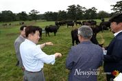 뉴스펀치 천세두 기자 | 제주특별자치도는 제주흑우를 고부가가치 지역 명품 브랜드로 육성하기 위해 25일 제주흑우 생산 및 연구개발 관련 현장을 방문했다. 이번 현장방문은 민선8기 출범 3주년을 맞아 추진하는 ‘민생로드’의 15번째 현장으로, 제주만의 독특한 가치를 지닌 제주흑우의 정책 현장을 직접 확인하고 농가와 연구진의 생생한 목소리를 듣기 위해 마련됐다. 이번 방문은 오후 4시 30분부터 6시 30분까지 2시간에 걸쳐 ▲제주마방목지 제주흑우 방목현장 ▲와흘 흑우농가 ▲제주대학교 흑우연구센터 순으로 진행됐다. 방문단에는 농협경제지주 고우일 본부장, 한우협회 도지회 박창석 회장, 제주축협 천창수 조합장, 흑우연구센터 박세필 교수, 와흘리 강익상 이장 등 관련 기관·단체 관계자들이 참석했다. 제주마방목지를 찾은 오영훈 지사는 축산생명연구원에서 방목 관리 중인 제주흑우 27마리의 생육 상황을 살펴보고, 우수 흑우 사육농가인 제주시 소재 와흘 와우목장과 제주대학교 흑우연구센터를 방문해 흑우산업 발전 방안을 논의했다. 이날 오영훈 지사는 “제주흑우가 전 세계는 물론 일본으로 진출해 와규와 경쟁