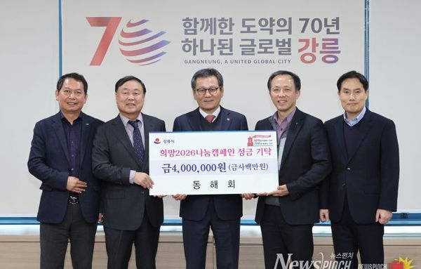 뉴스펀치 김길룡 기자 | 동해시와 강원도사회복지공동모금회는 연말연시 이웃돕기 분위기 확산과 지역사회 나눔 실천을 위해 시청 본관 1층 로비에서 ‘희망2026나눔캠페인’순회모금 행사를 진행했다.