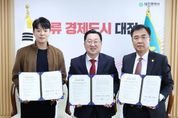 뉴스펀치 김길룡 기자 | 대전시는 28일 대전관광공사, 티엔알컴퍼니(주)와 함께 꿈돌이 누룽지 출시를 위한 공동브랜딩 업무협약을 체결했다. 이번 협약은 도시브랜드 IP(꿈씨패밀리)를 일상 식문화와 접목해 기념·선물형 간식을 개발·유통하고, 관광 소비 촉진과 지역 상권 활성화, 로컬기업과의 상생 생태계를 조성하기 위한 것이다. 이번에 출시되는 ‘꿈돌이 누룽지’는 일상 식품인 누룽지의 담백한 맛과 바삭한 식감을 살리면서, 꿈씨패밀리 세계관과 ‘꿈돌이’ 캐릭터를 담은 박스 패키지로 수집·선물 가치를 높인 것이 특징이다. 편식공장은 대전 동구에 기반을 둔 전통과자 전문 브랜드로, 쫀드기·꽈배기·곡물과자 등 ‘옛 간식’ 라인업을 현대적으로 재해석해 온 곳이다. 공식 채널을 통해 보리·쑥 등 우리 곡물 기반의 제품을 선보이며, 간결한 성분과 일상 간식에 어울리는 부담 없는 용량·구성으로 호응을 얻고 있다. 이장우 대전시장은 “누룽지처럼 누구나 즐기는 일상 먹거리에 지역 캐릭터와 로컬기업의 정성을 더해, 관광과 상권, 일자리를 함께 키우는 선순환이 만들어지길 기대한다”라며 “대전의 로컬브랜딩을 한 단계 끌어올리
