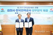 뉴스펀치 김길룡 기자 | 김천시는 지난 13일 한국전력공사 대구본부 김천지사(지사장 박용성)와 함께 ‘1인 가구 안부살핌서비스 '든든e살핌'’ 업무협약을 체결했다. 이번 협약은 급속히 증가하는 1인 가구의 고립과 사회적 단절, 그리고 복지 사각지대 문제에 대응하기 위해 AI 기술을 활용한 스마트 돌봄 체계를 구축하고, 지역 맞춤형 사회안전망을 강화하기 위한 것이다. 협약에 따라 양 기관은 전력 및 통신 데이터를 기반으로 1인 가구의 생활 패턴을 분석하고, 일정 시간 동안 전력 사용이 없거나 급격한 변화가 발생할 경우 이를 이상 징후로 인식해 담당 공무원 등에게 즉시 알림을 전송한다. 이후 현장 확인과 신속한 조치를 통해 고립된 시민의 생명과 안전을 지키는 AI 돌봄 체계를 구현하게 된다. 이번 사업은 고독사 위험군 30가구를 대상으로 우선 추진되며, 서비스 이용요금(월 3,300원)은 한국전력공사 대구본부 김천지사 러브펀드에서 전액 부담한다. 박용성 한국전력공사 김천지사장은 “지역사회와 함께 사회적 책임을 실천할 수 있게 되어 매우 뜻깊다.”라며, “전력 데이터를 활용한 AI 돌봄서비