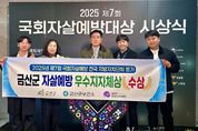 뉴스펀치 김길룡 기자 | 금산군은 지난 11일 국회 의원회관 대회의실에서 열린 제7회 국회자살예방대상 시상식에서 군 그룹 우수 지자체상을 받았다. 국회자살예방포럼과 안전생활실천시민연합은 지난 2019년부터 매년 전국 229개 기초지방자치단체를 대상으로 자살예방 활동을 조사하고 있다. 평가는 조직, 예산, 인력, 사업, 자살률 등 5개 영역과 17개 지표에 따라 점수화되며 지자체 규모에 따라 △인구 30만 미만 시 △인구 30만 이상 시 △구 △군 등 4개 그룹으로 구분하고 그룹별 상위 3개 지자체를 우수지자체로 선정했다. 금산군은 동일 그룹 평균인 54.8점보다 높은 종합점수 75.6점을 받았다. 주요 우수사례로 지역 특성을 기반으로 한 맞춤형 자살예방사업 추진, 생명지킴이 양성 및 교육, 고위험군 집중 개입, 지역사회 협력체계를 통한 촘촘한 안전망 구축 등이 꼽혔다. 특히, 생애주기별 지원 체계와 주민 접근성을 높인 상담·지원 프로그램이 인정받았다. 이 외에도 생명존중문화 확산을 위한 추진 상황으로 주민 인식개선 활동, 고위험군 맞춤지원 확대, 지역 특성을 반영한 예방사업